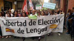 Die Hauptdemonstration fand Samstag in Orihuela statt, zum Teil waren die Demonstranten mit Bussen angereist und füllten die Straßen zur größten Manifestation, die der Ort je gesehen hatte. In 12 weiteren Städten der Comunidad Valencia fanden Kundgebungen zur Untersützung statt, wie hier auf dem Bild aus Valencia mit den Forderungen: „Freiheit der Sprachwahl“, „Stop der Sprachdikatur“, „Die Familien sollen entscheiden und nicht die Politiker“, „Spanien ohne linguistische Hindernisse“